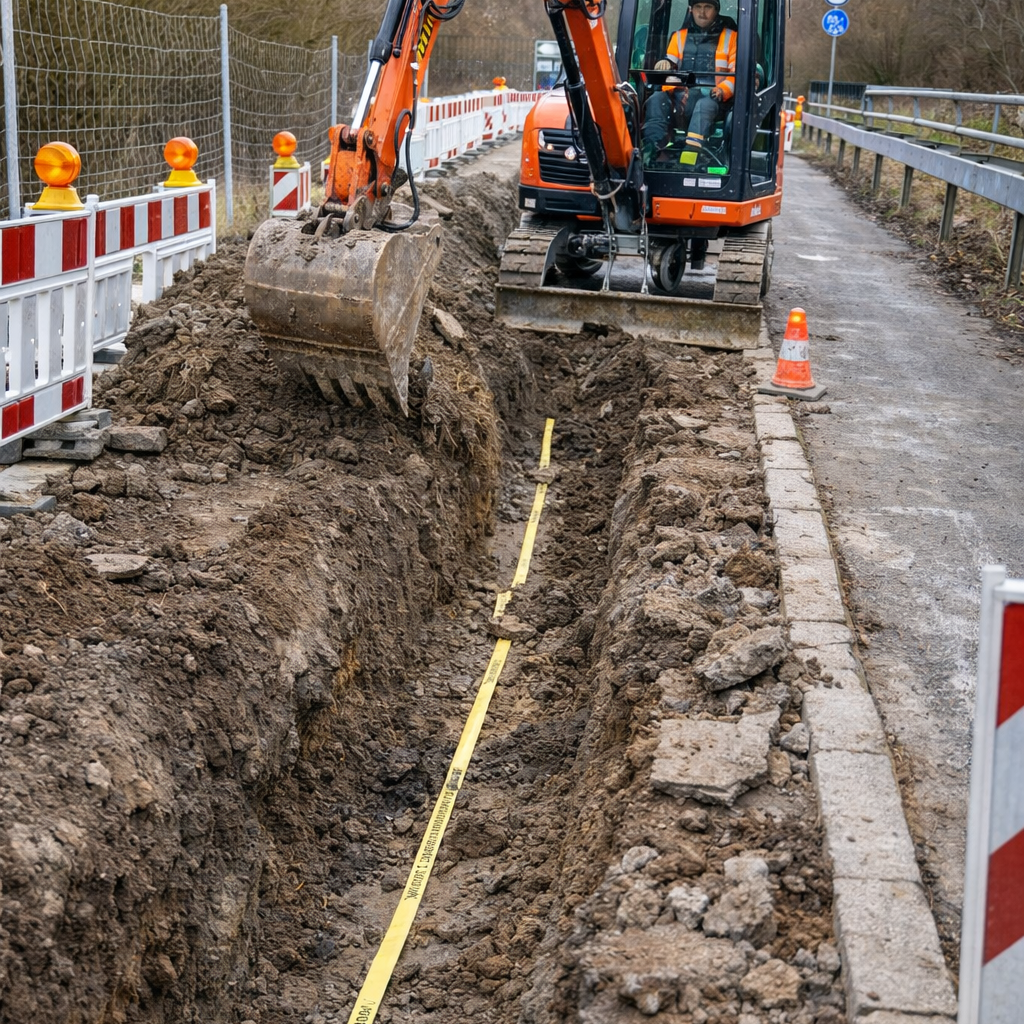 Wir bieten umfassende Dienstleistungen im Tiefbau für Glasfaser- und Koaxialleitungen an. Unsere Expertise umfasst die Verlegung neuer Leitungen, die Durchführung von Hausanschlüssen sowie die Behebung von Störungen.